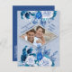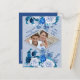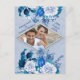 White Rose Flowers on Blue pattern paper Announcement Postcard