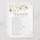 Watercolor white cream roses, gold floral and greenery foliage Bridal Shower Game - Who Knows The Bride Best.