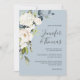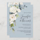 White Roses and Hydrangea on Blue Floral Wedding Invitation