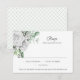 Watercolor white roses, eucalyptus, baby's breath, and greenery RSVP. The back of the card is a lattice work pattern in pale eucalyptus green. If you would like this design on a matching product, please contact me through my store. Matching wedding invitation available.