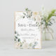 Gorgeous elegant white roses & tiny daisies surrounded with a rustic gold frame & mixed greenery of eucalyptus with other watercolor leaves wedding invitation. Clean white background adds to the elegance of this lovely design. Stunning. Faux gold splashes on front & back to create a chic look.
