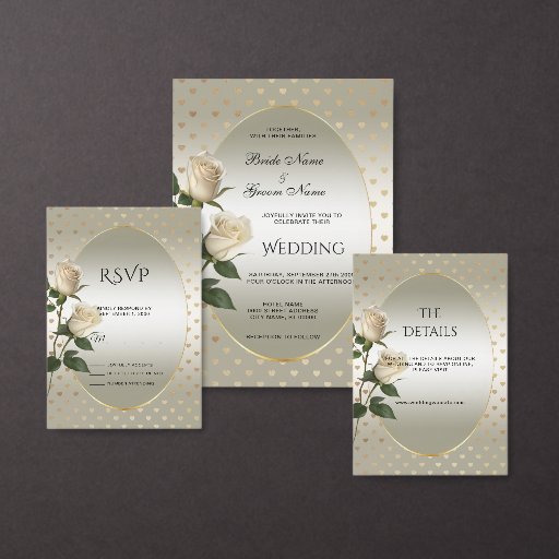 White Roses Gold Hearts Stone Coaster