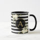 WHITE ROSES Gold Monogram Black White Striped Mug