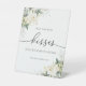 Roses Blanches Floral Invité Combien De Baisers Signe. Cette invitation à la douche nuptiale élégante et élégante présente de magnifiques aquarelles peintes à la main de couleur blanche Roses florales. Trouvez les articles correspondants dans la collection Florale de Roses Blanches.