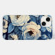 White Roses on Indigo Blue Background Case-Mate iPhone Case