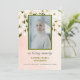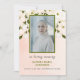 This Romantic Memorial Prayer design features a watercolor white roses and greenery foliage on light peach pink background with green and black elegant text. Add photo in greenery frame. The reverse side of the poem card is light peach pink coloured with chic white flowers, ang greenery frame with prayer text .
