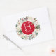 White roses & red berries Christmas wreath Classic Round Sticker