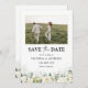 White Roses Save The Date with Photo Flat Card