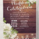 Modern Wedding Invitation with Detachable RSVP Postcard Template - Elegant Script with White Roses and String Lights on Rustic Wood Background.