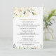 This design features an illustration of white cream roses and greenery foliage in watercolor style. On the top of the card - golden and greenish effect confetti.