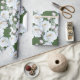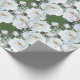 Pretty white roses wrapping paper. Heavy duty, quality gift wrap on a roll has an allover design of realistic white roses and pink buds with greenery. The background colour is dark green. Use this beautiful wrapping paper for weddings, birthdays and other occasions. Easily change the background colour in the “customize further” section.