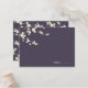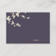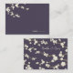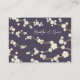 An original illustration of beautiful ivory white cream cherry blossoms or sakura spring flowers with light brown branches on a eggplant / aubergine / dark plum purple background. This is a modern wedding place card / guest seating escort card.
