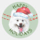 White Samoyed Dog Santa Hat Happy Holidays Classic Round Sticker