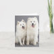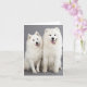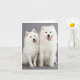 Brighten someone's day with a with a Samoyed smile! This cute canine card features an image of two happy white Samoyed puppy dogs highlighted against a creamy light grey background.