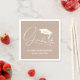 White Script Graduation Cap Taupe Napkin