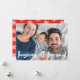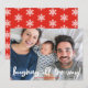 This modern holiday photo card features white calligraphy script over a full-bleed photo. This design accommodates a single, horizontal photo on the front of the card. The greeting on the front says "laughing all the way". On the reverse side you will find a festive red and white snowflake pattern which can be removed or changed. You can also add another photo or text to the back by selecting the "customize further" option.