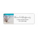 Address labels with a gorgeous photograph. Tropical blue water and foamy surf in the background. A collection of seashells and stems set on a white sandy beach.