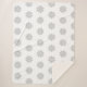 White sherpa blanket with snowflakes. Comfy, cozy and warm. Fun Winter fashion decor.