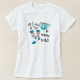 WOMEN's SHORT SLEEVE WHITE T-SHIRT: " All I need is Tea and Warm Socks " with Black text and Turquoise Aqua Blue Christmas Socks