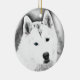 White Siberian Husky w/ Blue Eyes Fine Art Sketch Ceramic Ornament