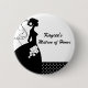 Trendy silhouette bride matron of honour wedding party buttons for your bridal party. Our bridal party buttons feature a silhouette bride with a black & white polka dotted boarder with a White background. Just customize with your information and you're all set to go. Available in our shop @ www.celebrateitwedding.com in additional colours! Matching bridal shower invites, thank you notes and stickers are also available.