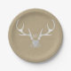 White Silver Antlers & Brown Paper Rustic Wedding Paper Plate