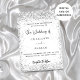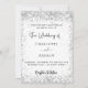 A white background on the front. Decorated with faux silver glitter. Personalize and add your names and party details.