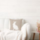White Sitting Bunny Silhouette On Beige Easter Throw Pillow