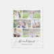 White Blanket with 6 photos arranged in a grid layout. You can also add your family name in a stylish calligraphy font and the year established. Perfect for wedding gifts, family keepsakes, etc.