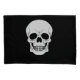 A grinning white skull head silhouette on a black background colour. Eerie design to decorate for Halloween time, for example.