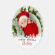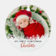 White Snow First Christmas Red Plaid Photo Metal Ornament