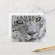 A stunning nature photograph postcard of a white snow leopard wildcat.
