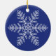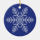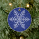 White Snowflake on Blue Background Ceramic Ornament