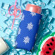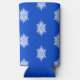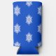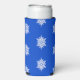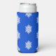 White snowflake pattern on blue seltzer can cooler