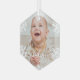 Beautiful Christmas ornament: Add a photo of your baby, boy or girl, and their name and the year. White snowflakes are printed on your photo to give it a beautifully wintery feel. Photo template via Pixabay licensed under CC0 and must be replaced with your own photo