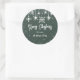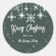 A modern white snow and hanging snowflakes in white elegant christmas stickers on green.