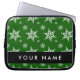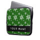 White Snowflakes, Green, Your name, Personalize Laptop Sleeve