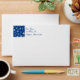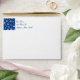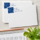 Card envelope with an insert of white snowflakes on holiday blue background. Customizable return address too.