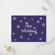 Painting of white snowflakes on a royal blue background is printed on wedding invitation postcards. Easily customize the text on the template forms.
