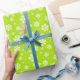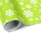 White Snowflakes on Green Winter Pattern Wrapping Paper