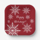 White Snowflakes on Red Happy Holidays Paper Plate