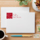 Card envelope with an insert of white snowflakes on holiday red background. Customizable return address too.