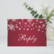 White snowflakes on red background Wedding Reply flat card.