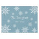The pretty White Snowflakes on Slate Blue Winter Holiday Table Cloth can be personalized with a family name and year. Perfect to give a newlywed bride and groom as a keepsake wedding gift. This festive custom winter wonderland table wear features white intricate snowflakes with a slate blue background. Feel free to change the background colour to suit your individual needs.