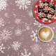 White snowflakes and snow in a backdrop of dusty rose pink.
