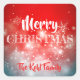 Elevate greetings with our customizable Christmas sticker. A red and blue gradient backdrop hosts snowflakes, stars, and bokeh effects, while "Merry Christmas" in cursive adds elegance. Personalize the lower text with your family name or message. Framed in white, perfect for holiday cards or gifts. 🎄🎁