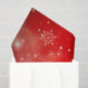 Beautiful winter themed tissue paper design featuring white snowflakes, sparkles and bokeh on red/white blurry background.