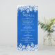 White snowflakes on a blue background Christmas Wedding Menu Rack Card.