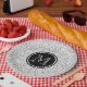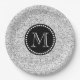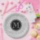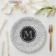 This is white soft with black dots monogram paper plate. you can personalize with a white monogram initial in a modern font, on a black circle label frame with a fun white polka dot circular border. You can use the template field to add your monogram initial or letter or select and customize it.