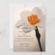 Invite guests to your March, April or May springtime nuptials and reception with the elegant White Spring Daffodil Wedding Invitation. This pretty custom botanical marriage invite features a floral photograph of a white daffodil flower blossom on the stem with an orange centre or narcissus geranium and a beige background. Available as a printed invitation for mailing or as a digital download for easy sharing digitally online.